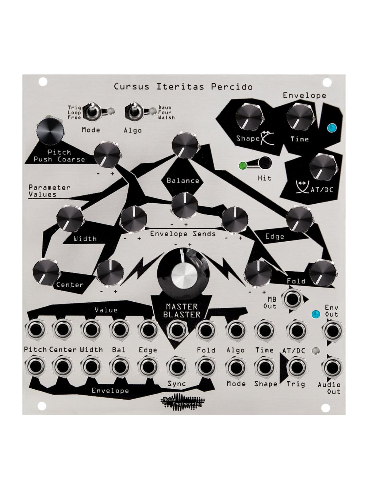 Cursus Iteritas Percido is the second module in the Percido line of powerful synth voices. Similar to its predecessor the Loquelic Iteritas Percido, CIP takes the original Cursus Iteritas and adds the same musical envelope from LIP with attenuverter-controlled routing to every knob. With the inclusion of the performance-oriented Master Blaster and CV outputs, CIP is a powerhouse of incredibly versatile synthesis in 24 HP.